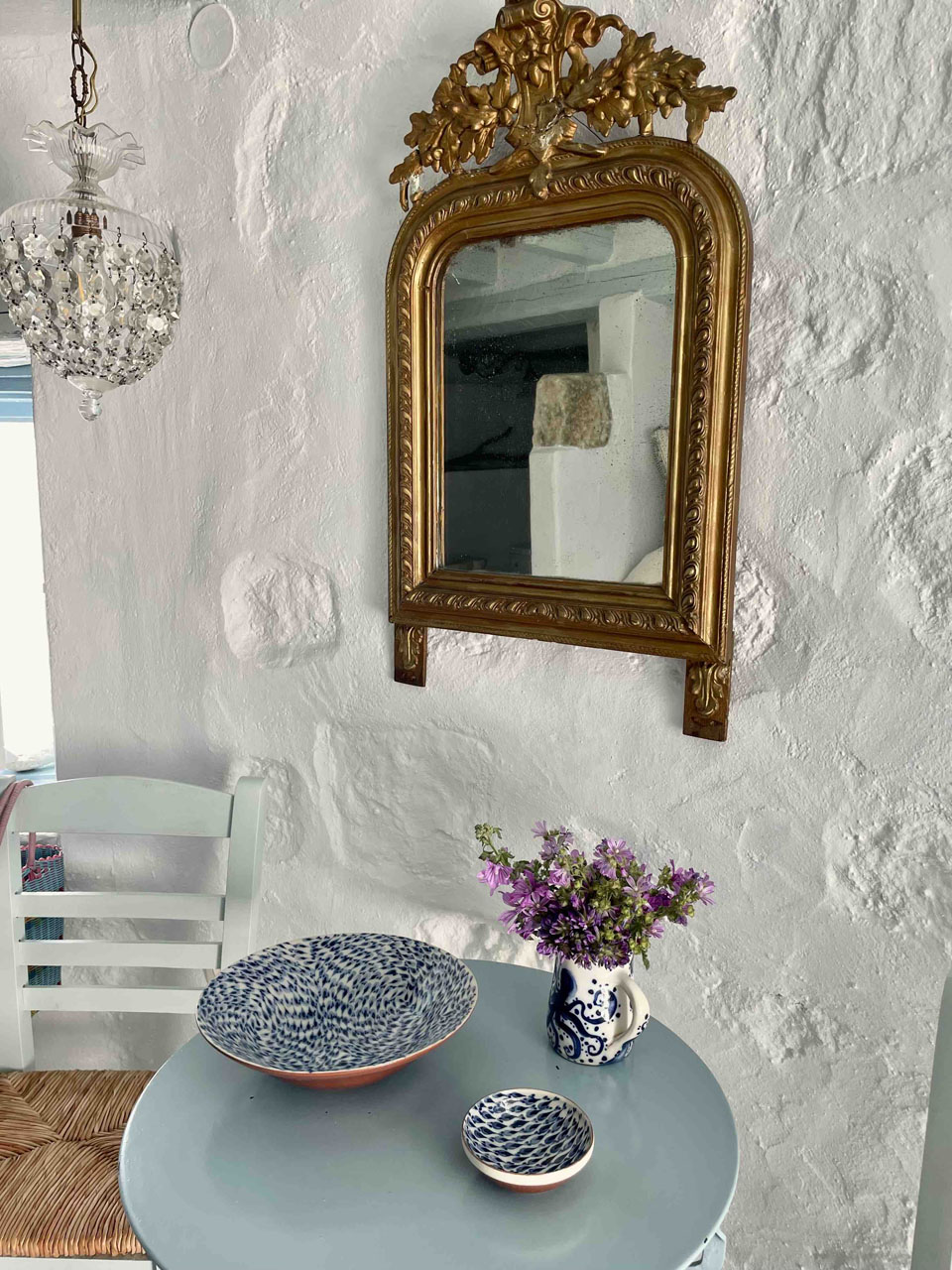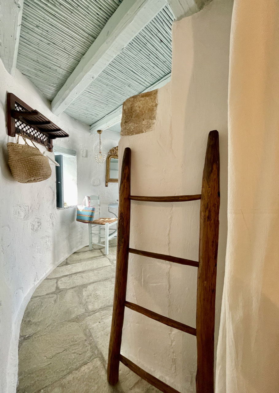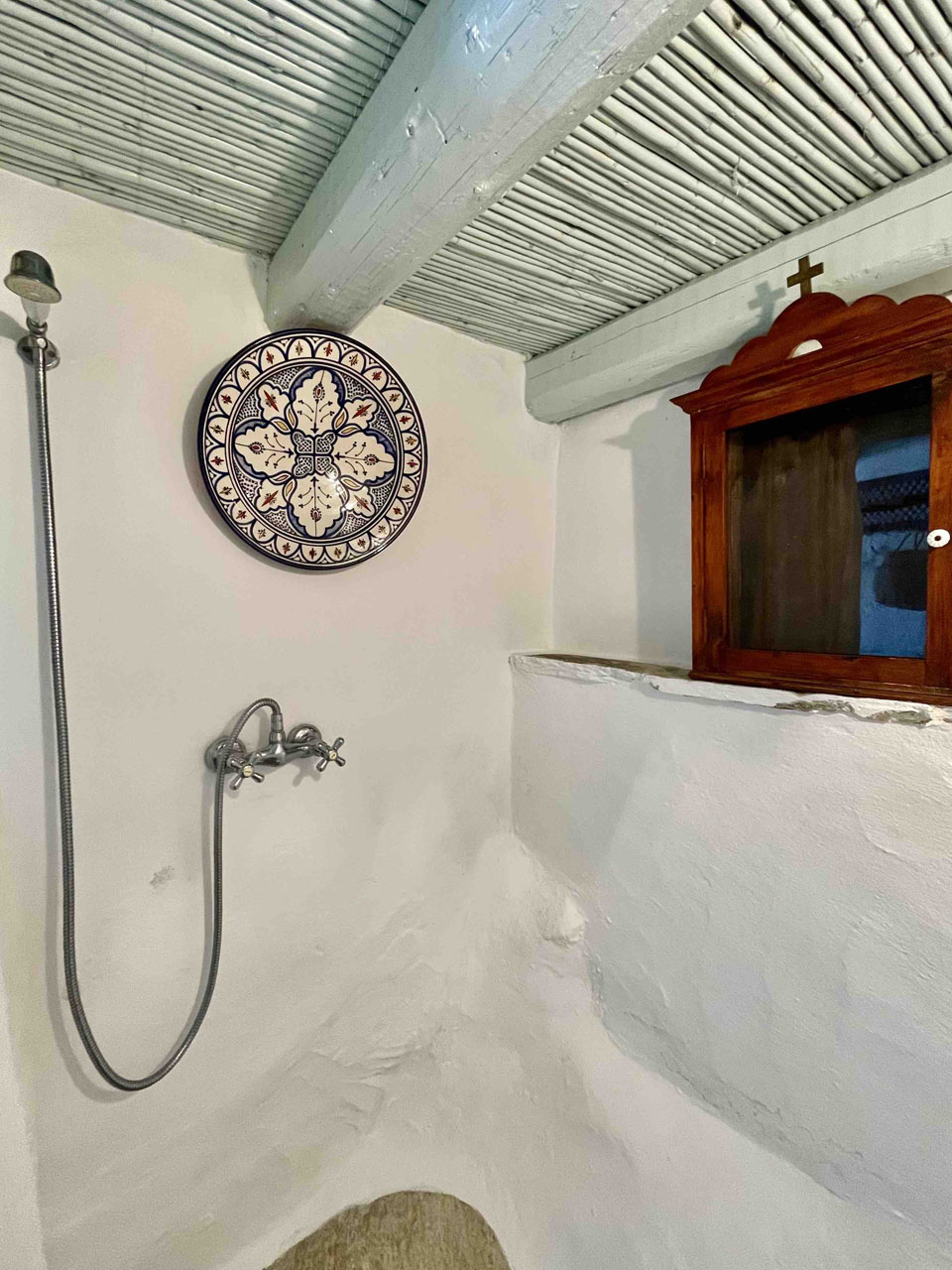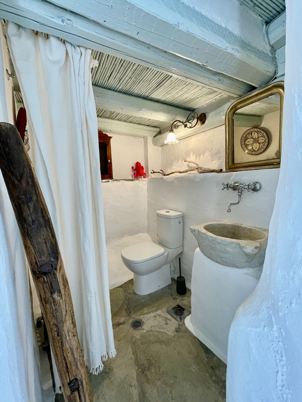 The bed is a comfortable traditional alcove with linen bed sheets. The room and the bathroom are furnished with antiques to recreate the warm and original atmosphere of the old houses of Chora with a touch of the Italian style of its owners. The bamboo, grown on the island, is used for ceilings according to the Serifos tradition.