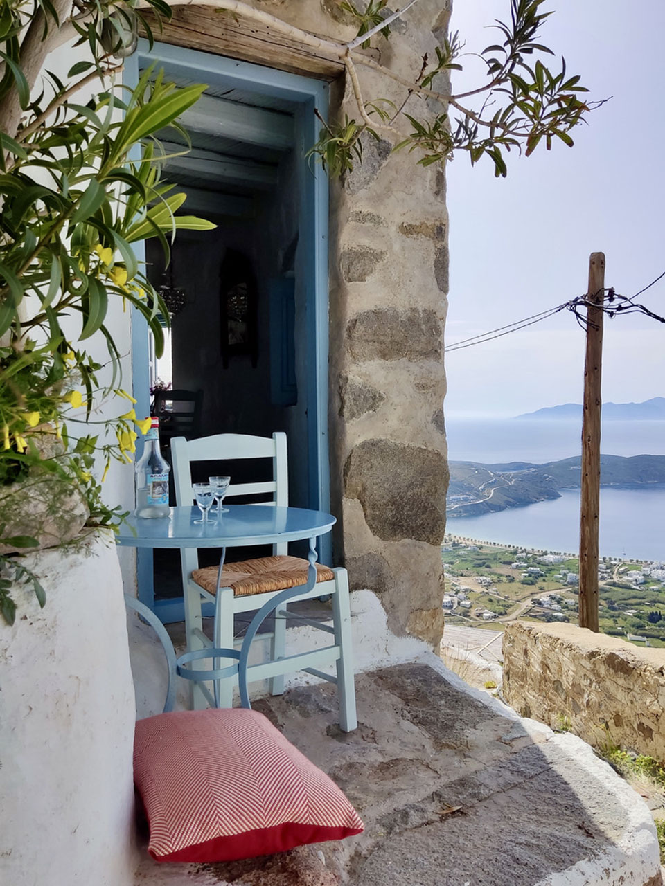 Many paths departing from the house lead you to Castro (1 min), to the lively Chora square ( 5 min), to KatoChora (10 min), to Livadi ( 20-25 min).